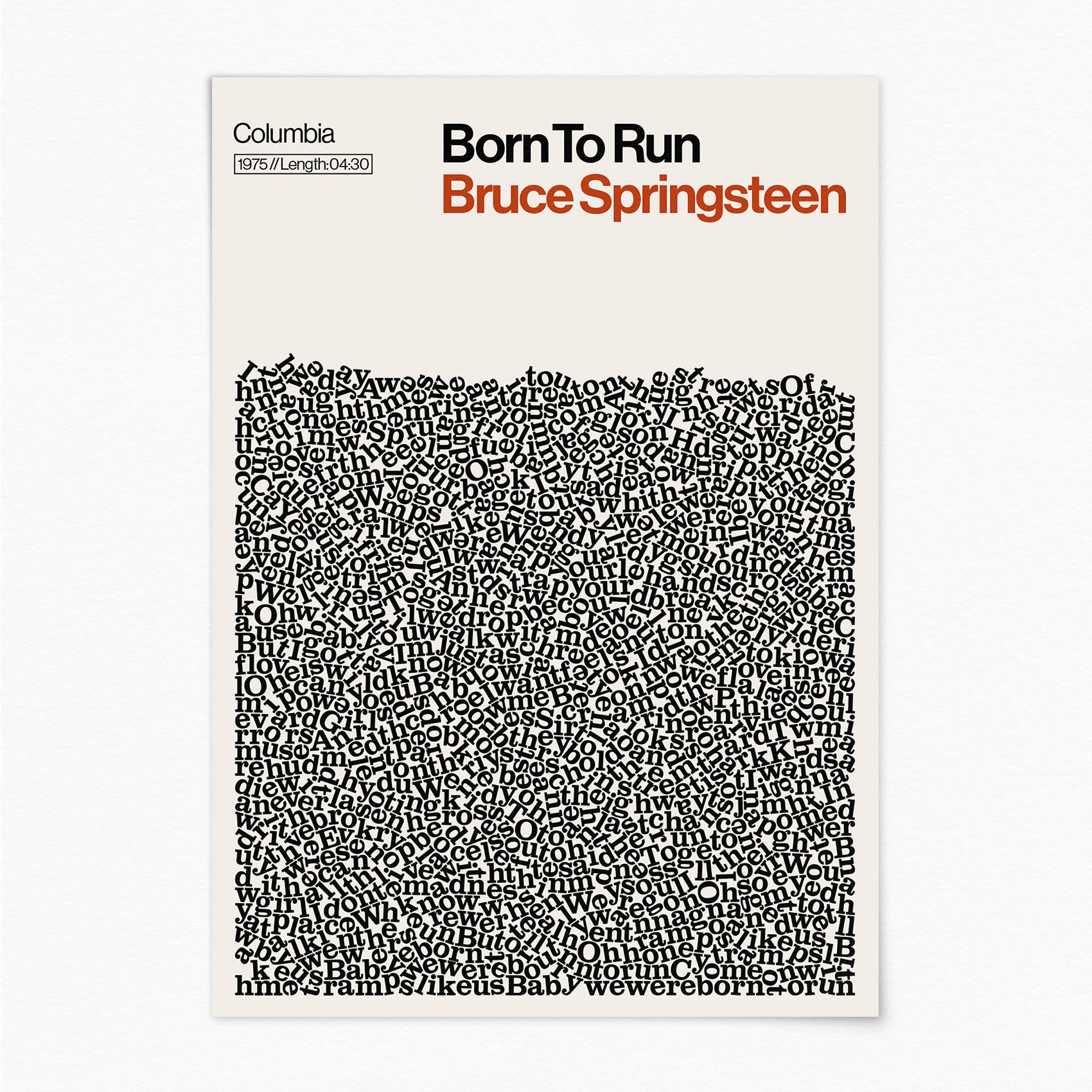 Our internationally renowned Song Lyric posters transform the words that move you into captivating visual art. We take every single lyric from the original recording, give them a gentle shake, and let them settle naturally within the frame.