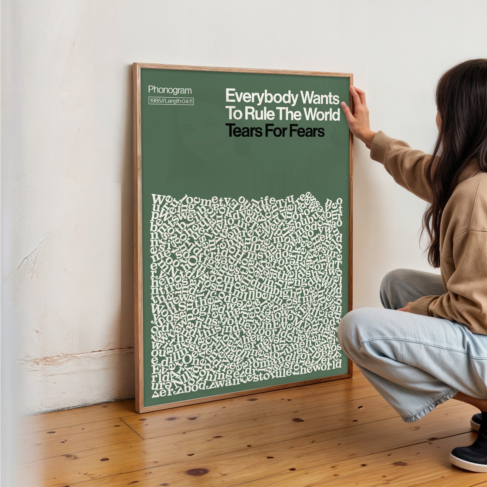 Our internationally renowned Song Lyric posters transform the words that move you into captivating visual art. We take every single lyric from the original recording, give them a gentle shake, and let them settle naturally within the frame.